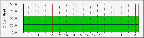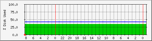 disk gebruik all Beschikbaar (GB, blauw) en Used size (GB, groen)